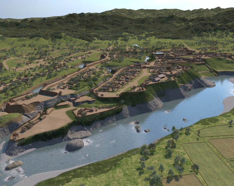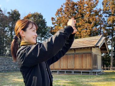 高精細CGにより鉢形城を再現。 鉢形城跡の15カ所にて、360°画像で戦国時代の鉢形城を体験できます。 しかも、iPhone/iPadの場合、復元CGの中に入っての記念撮影もできます。(一部機種を除く)